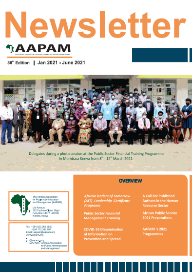 This journey has been made fruitful by the effort of a number of our committed partners and individuals. Special thanks to the Institute of Public Administration of Canada (IPAC) and the Department of Foreign Affairs, Trade and Development (DFTAD)- Canada who have funded and fully supported the production of this policy. I am further immensely grateful to Kisanet Tezare- Senior Gender Analyst PAC/Kartini and Dana Peebles, Director – Kartini International/IPAC Gender Advisor for their enormous expertise that has helped carve this policy. I also compliment the AAPAM Executive Committee, Council and Staff for making the production of this policy successful.